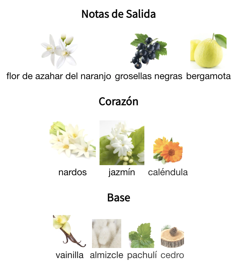 Desde la primera aplicación, transmite elegancia y feminidad con un aroma agradable que capta la atención de manera natural. Su apertura es suave y luminosa, creando una sensación fresca y acogedora que resulta perfecta para quienes prefieren fragancias delicadas con carácter.